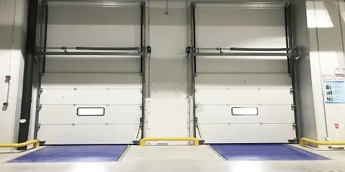 冷庫滑升門適用于醫藥、食品、電子、超市等保溫度潔凈度要求高的庫房及區域隔離,具有外形美觀、高強度、安全可靠、開啟平穩、低噪音、密封與保溫性能良好、節省占用廠房空間及提高生產效率等顯著特征,因較低的安裝條件和較高的實用性而得到廣泛應用。滑升門,其門體沿固定的軌道滑升,開啟關閉輕快,低噪音,高強度,具有完整的密封結構和性能。不占用房內的空間,大門可完全敞開。厚度達到40-70mm的高質量的夾芯式門板提供了好的保溫性能。連同許多可選擇的操作以及配件,可以滿足需要堅固、快速,以及能節省空間的工業房屋外墻用門的客戶及工業建筑對高品質工業門的要求。