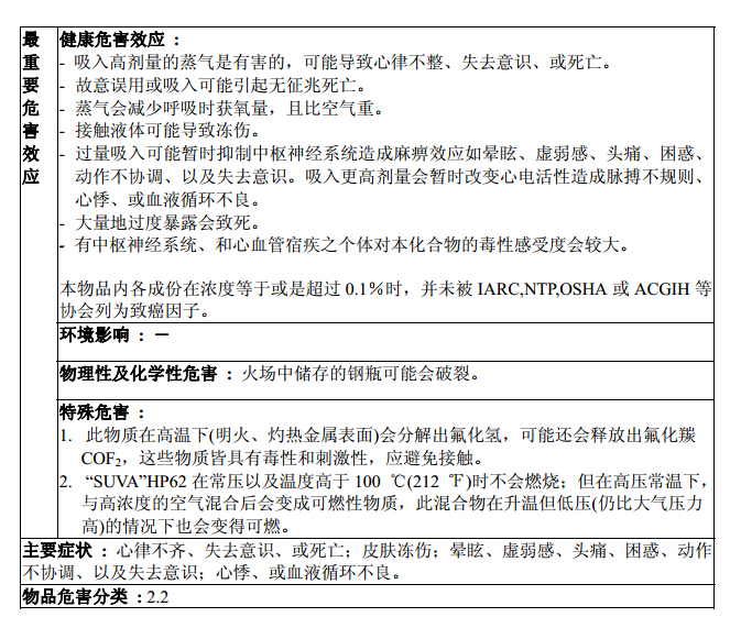 使用R404a制冷劑時(shí)材料安全數(shù)據(jù)表(參考)