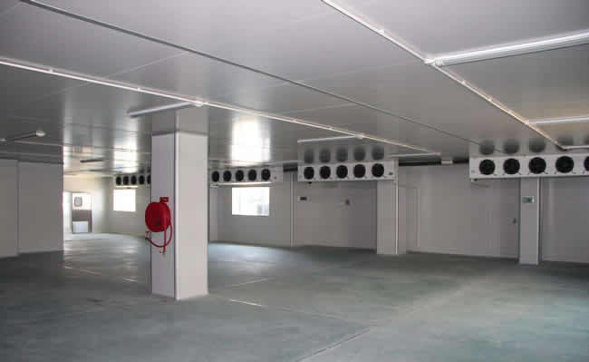 肉類冷凍庫設計建造時,通常會采用150mm聚氨酯雙面彩鋼板,其特點有重量輕、安裝便捷、保溫隔熱能搶、阻燃效果好等優勢。