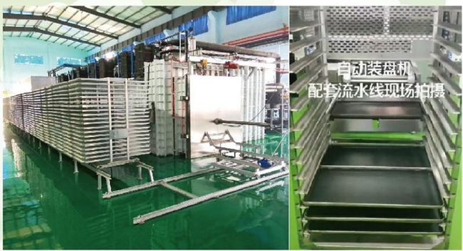 1、連續凍干的加熱方式,采用熱回收制冷制熱設備,減少鍋爐的投資,系統采用全自動化,簡便快捷。